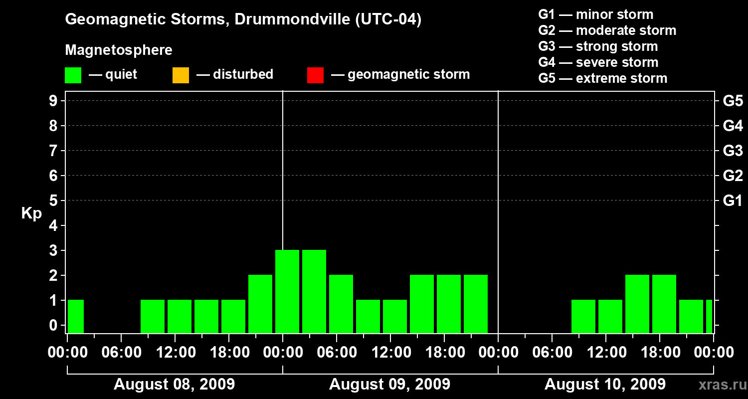Geomagnetic storms in Drummondville on Aug 10, 2009