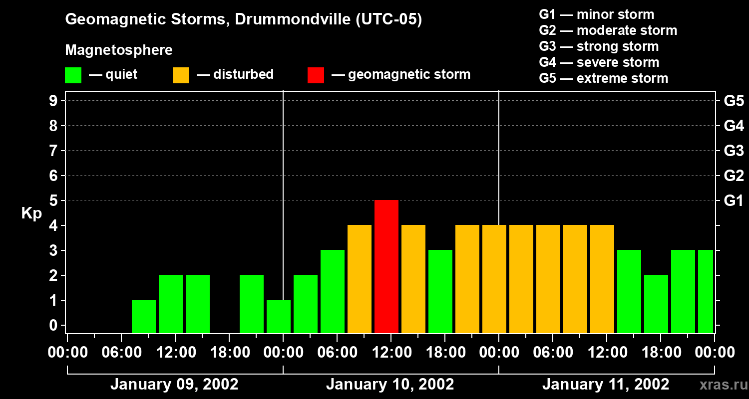 Geomagnetic storms in Drummondville on Jan 11, 2002