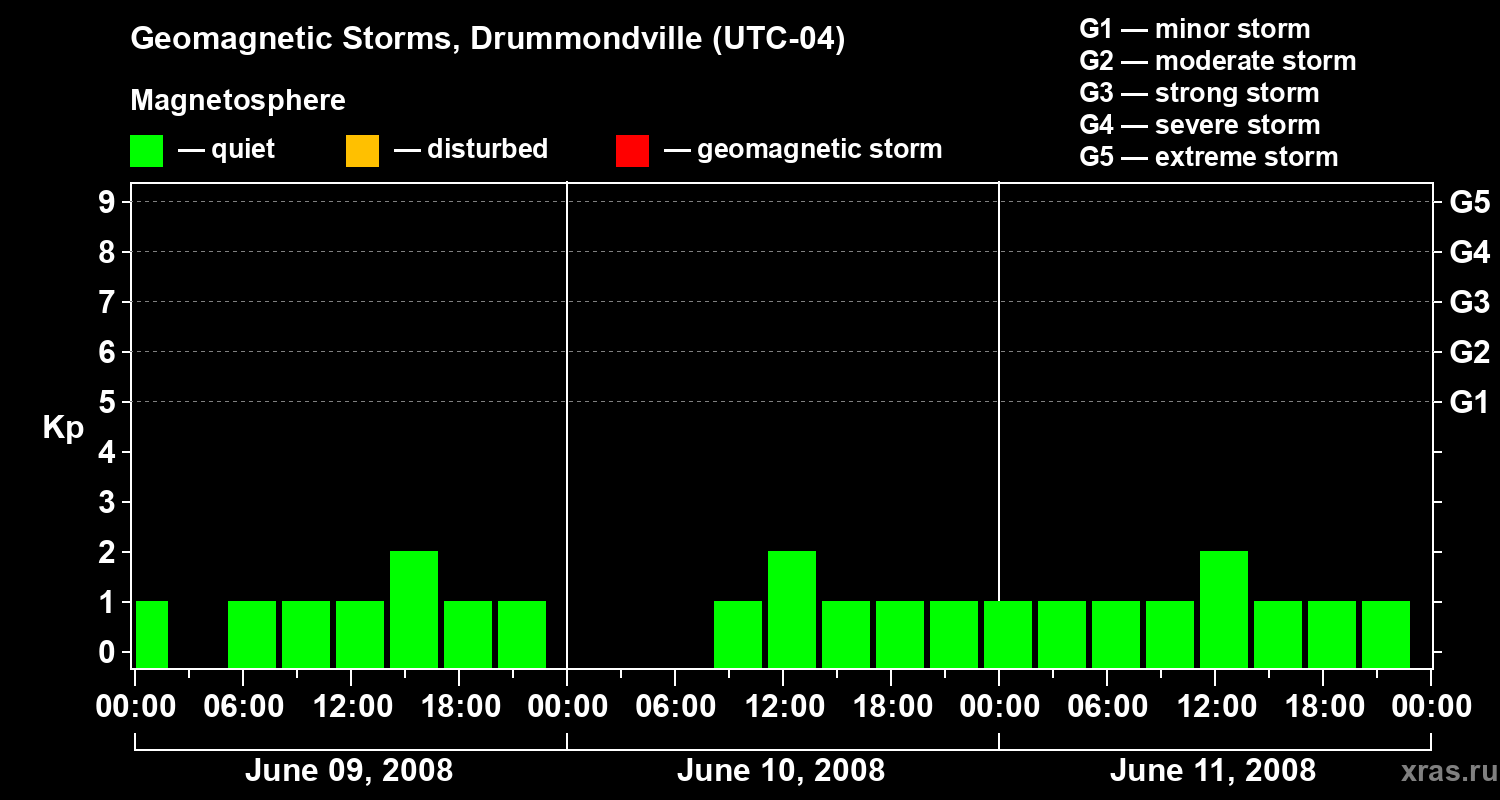 Geomagnetic storms in Drummondville — Jun 11, 2008