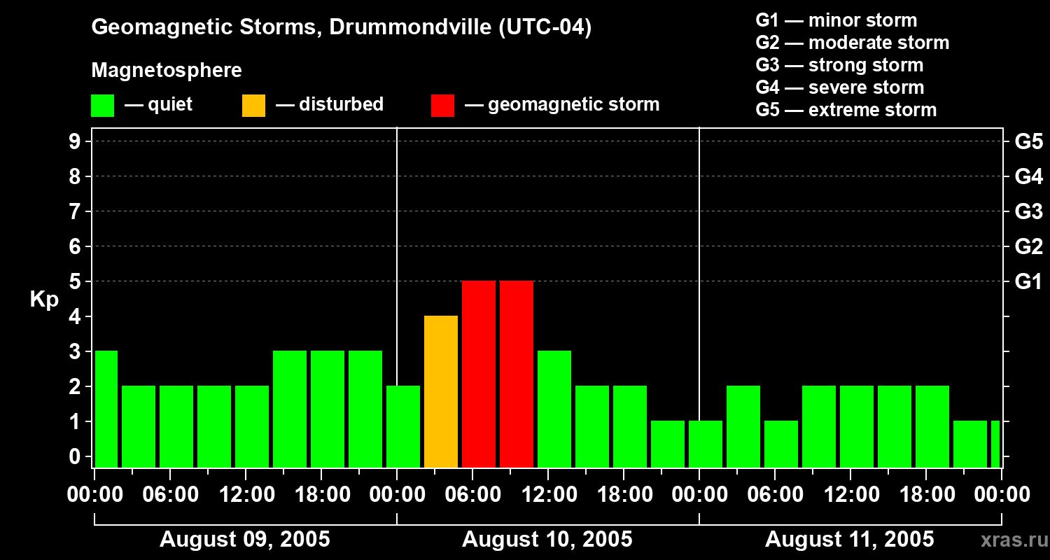 Geomagnetic storms in Drummondville on Aug 11, 2005