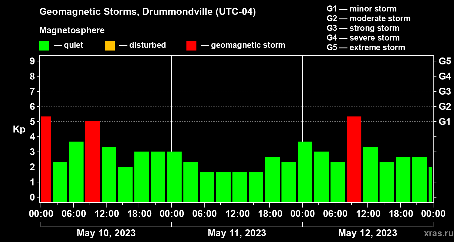 Changes in the geomagnetic index Kp from May 10 to 12, 2023 for mid latitudes