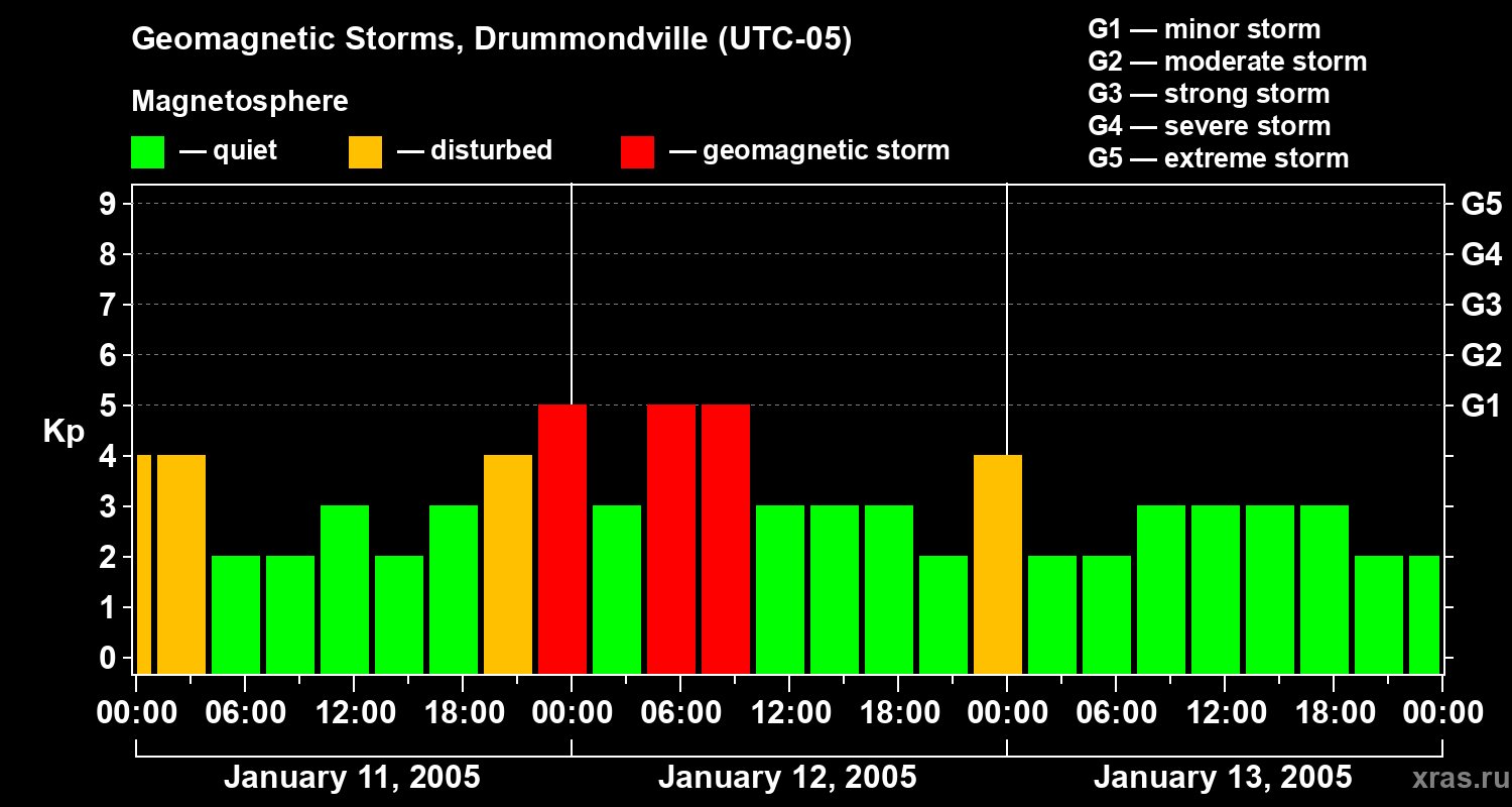 Geomagnetic storms in Drummondville — Jan 13, 2005