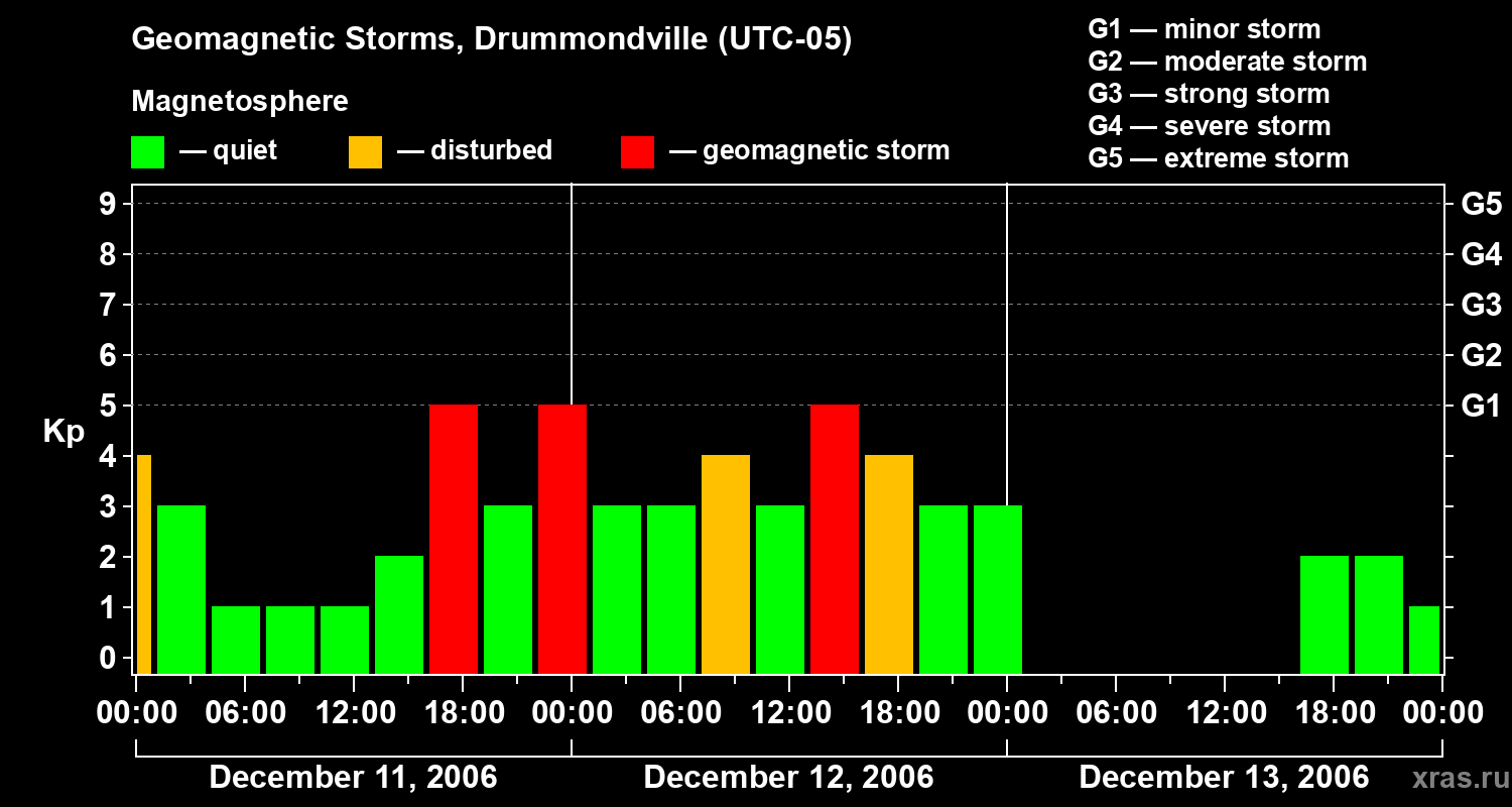 Geomagnetic storms in Drummondville on Dec 13, 2006