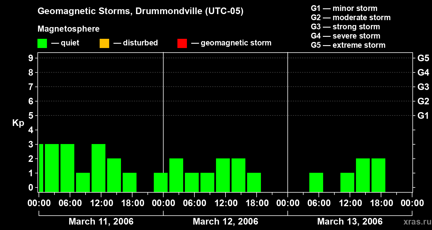 Geomagnetic storms in Drummondville — Mar 13, 2006