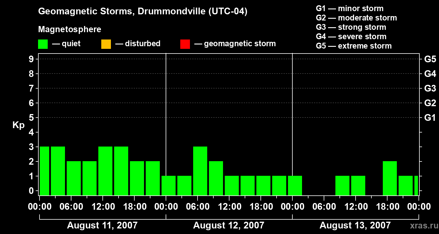 Geomagnetic storms in Drummondville — Aug 13, 2007