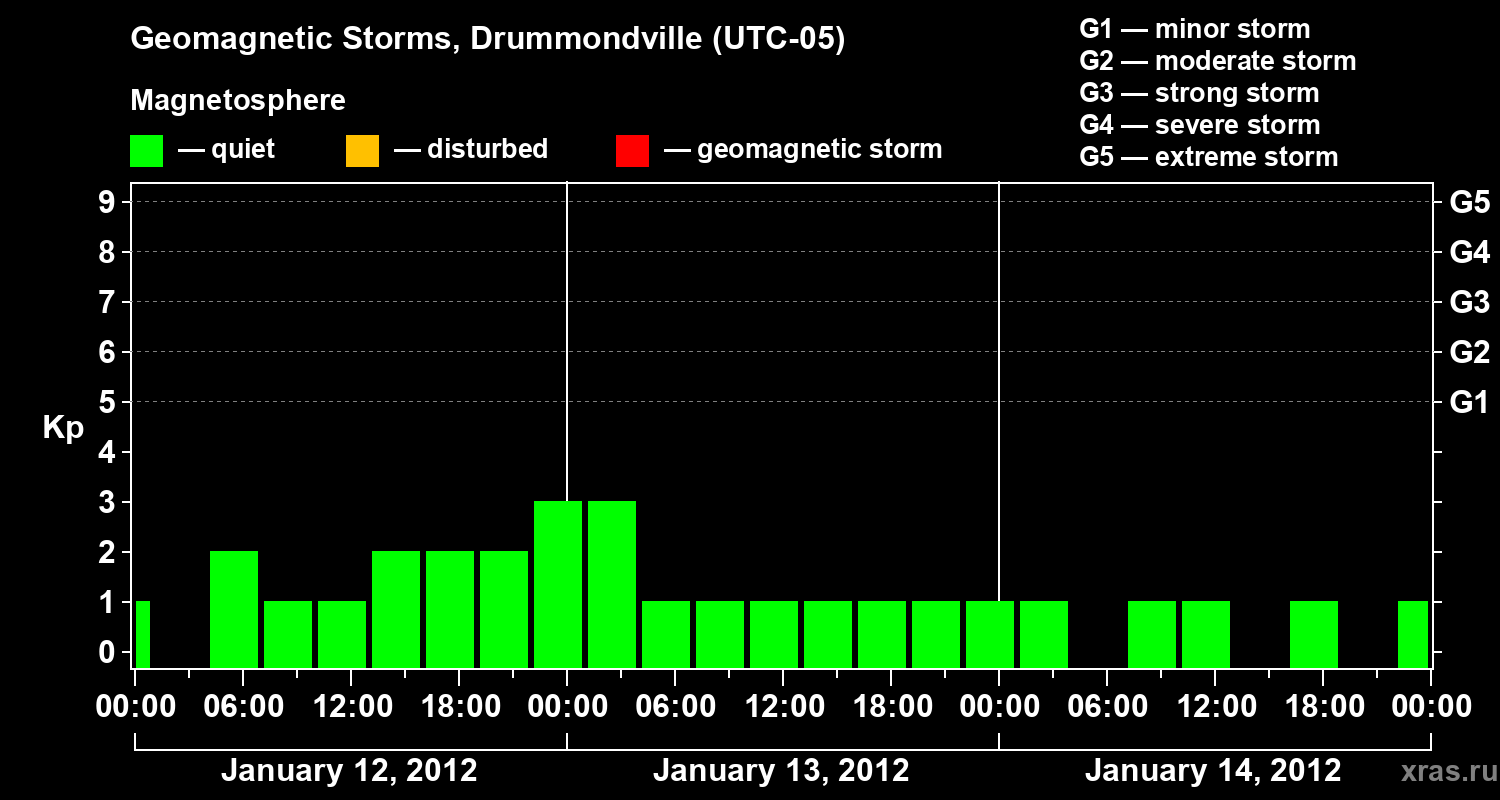 Geomagnetic storms in Drummondville — Jan 14, 2012