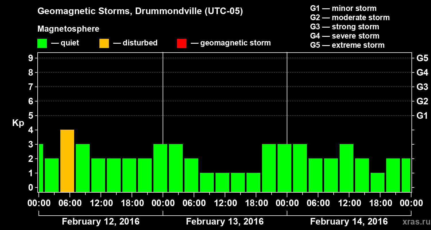 Geomagnetic storms in Drummondville — Feb 14, 2016