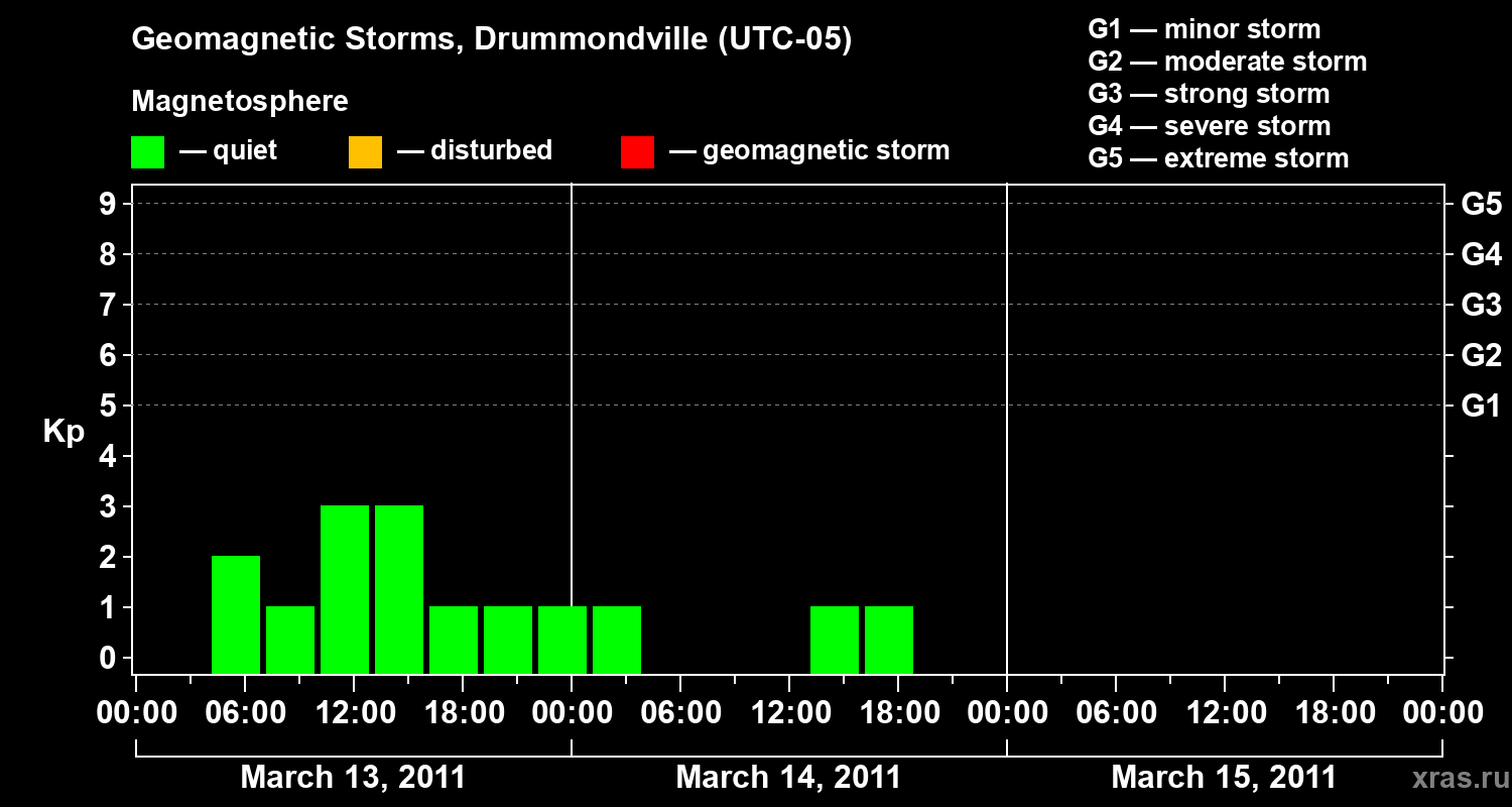Geomagnetic storms in Drummondville — Mar 15, 2011