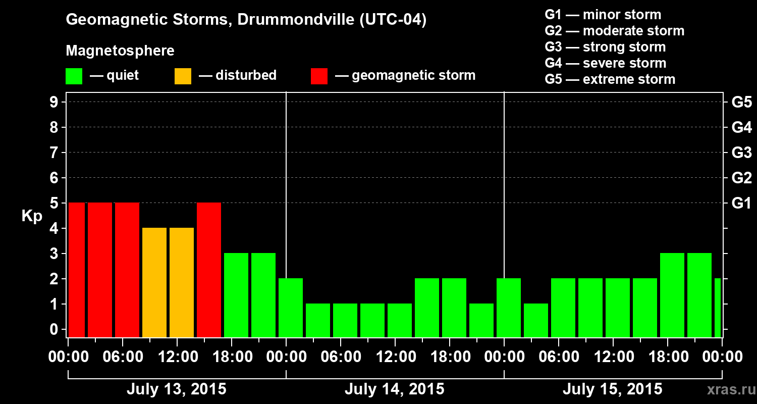 Geomagnetic storms in Drummondville — Jul 15, 2015