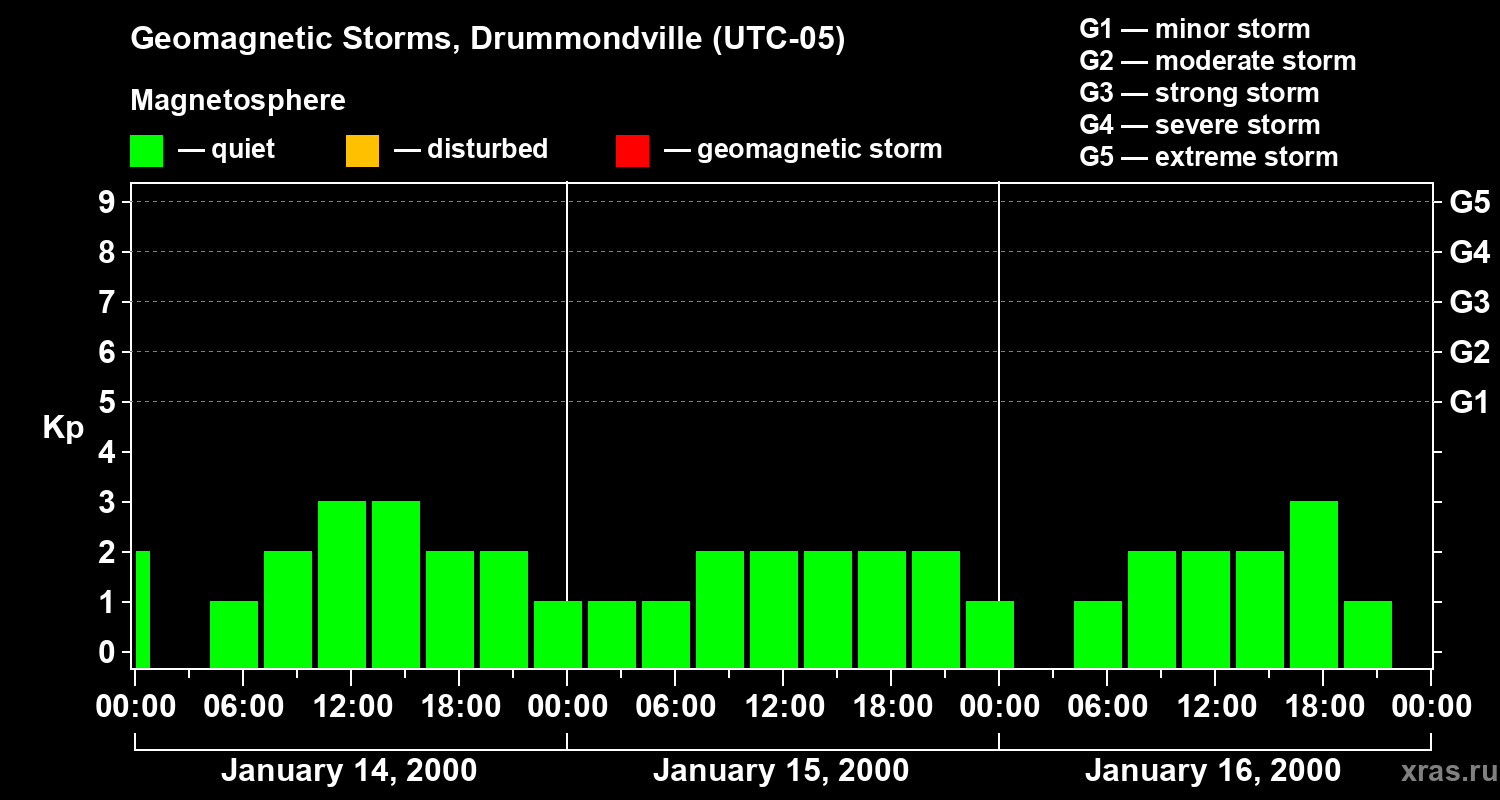 Geomagnetic storms in Drummondville — Jan 16, 2000