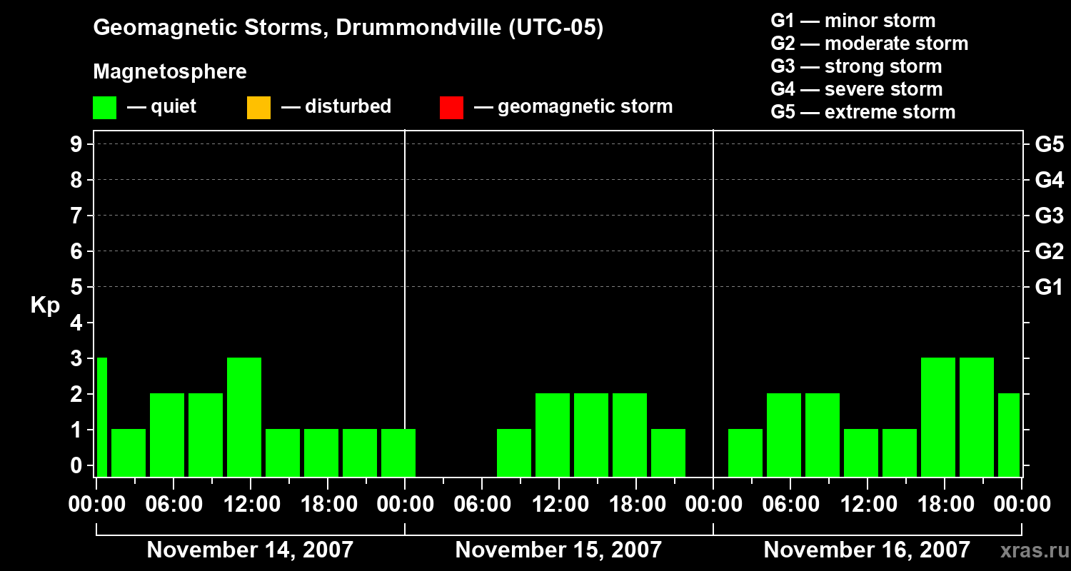 Geomagnetic storms in Drummondville on Nov 16, 2007
