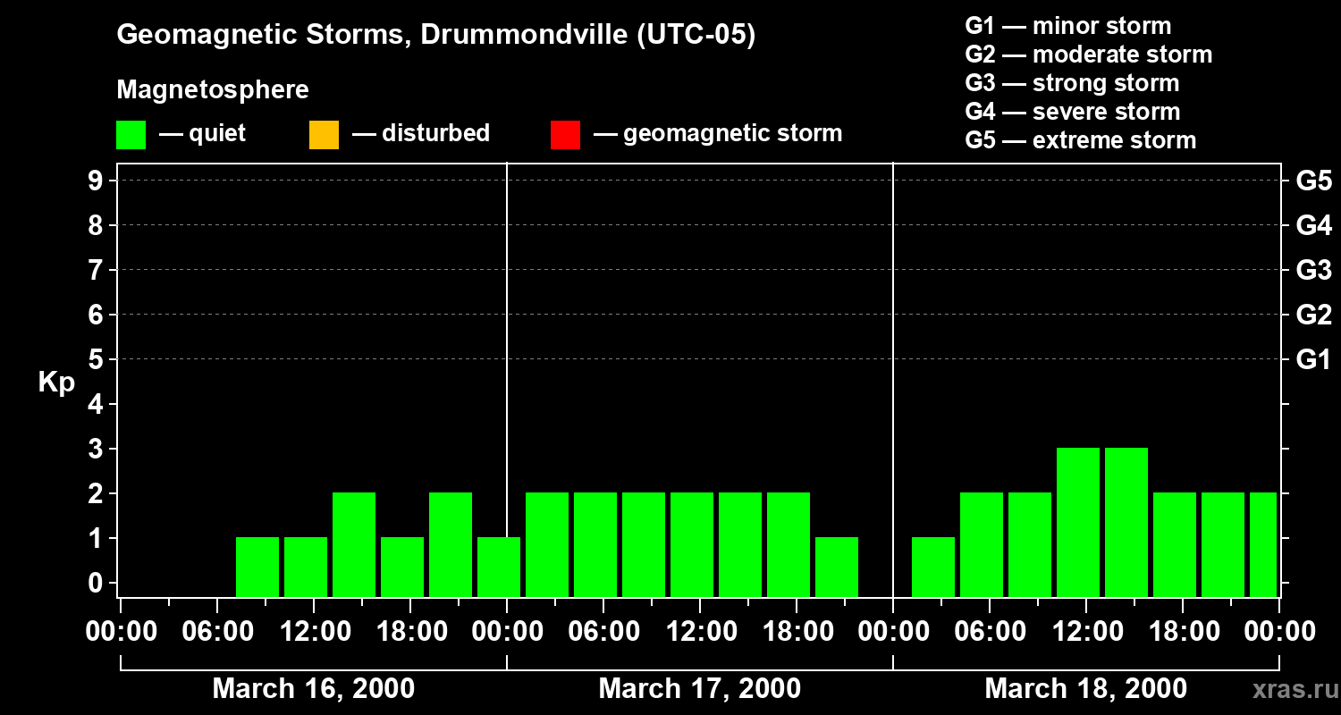 Geomagnetic storms in Drummondville — Mar 18, 2000