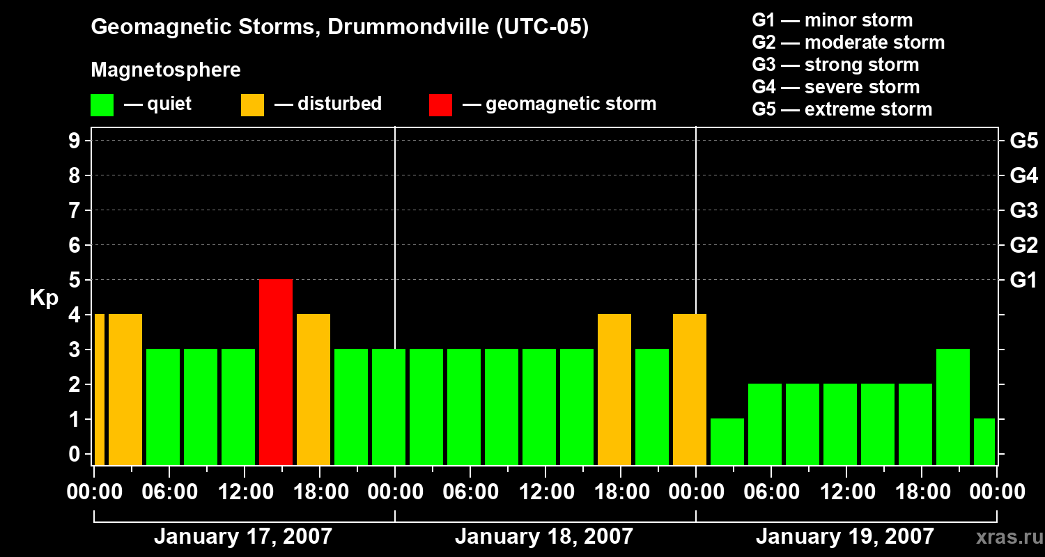 Geomagnetic storms in Drummondville — Jan 19, 2007