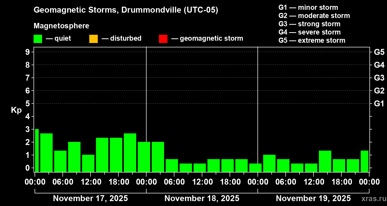 Geomagnetic storms in Drummondville — Nov 19, 2025