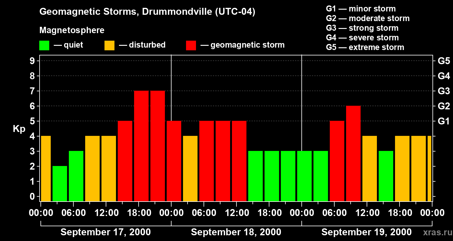 Geomagnetic storms in Drummondville — Sep 19, 2000