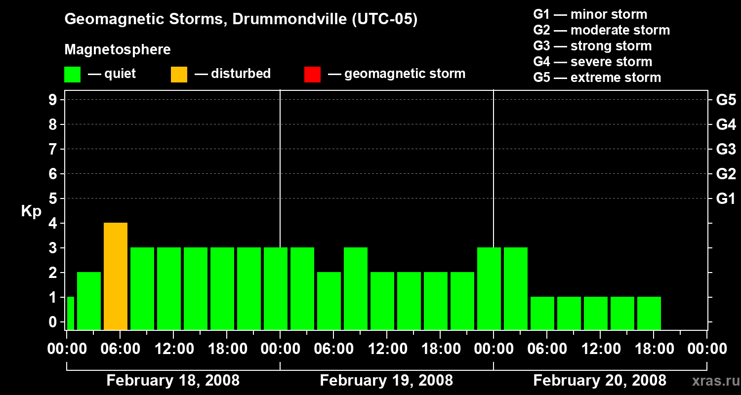 Geomagnetic storms in Drummondville — Feb 20, 2008