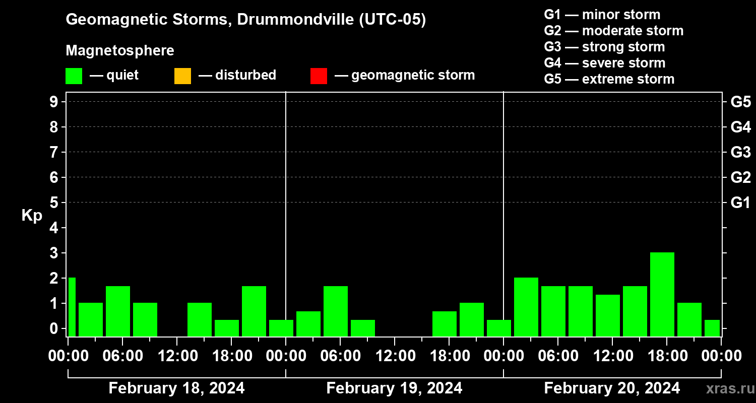 Geomagnetic storms in Drummondville in February 2024