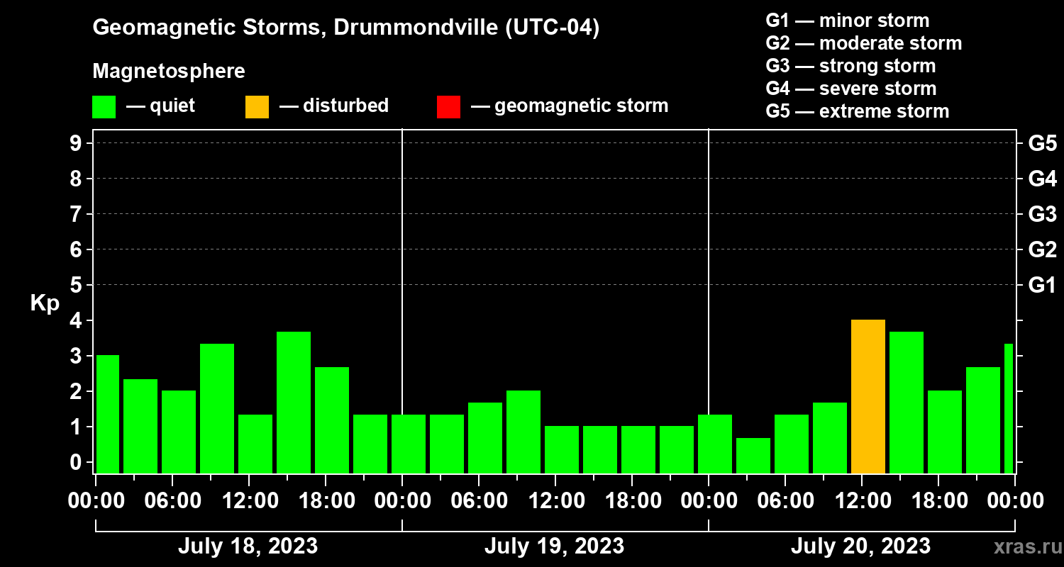 Geomagnetic storms in Drummondville — Jul 20, 2023