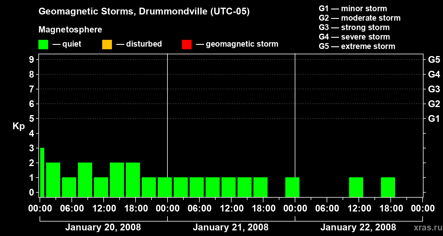 Geomagnetic storms in Drummondville — Jan 22, 2008