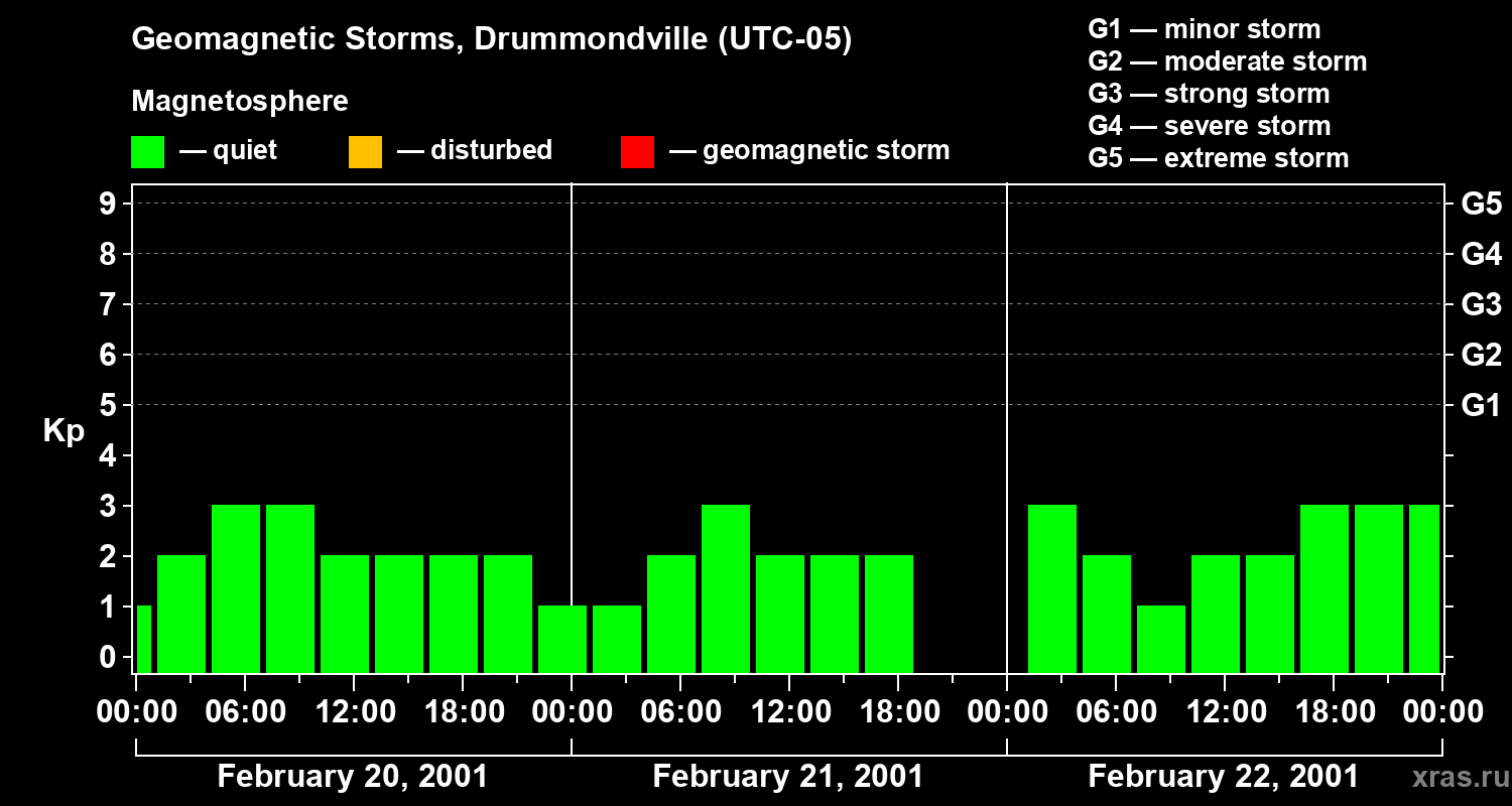 Geomagnetic storms in Drummondville — Feb 22, 2001