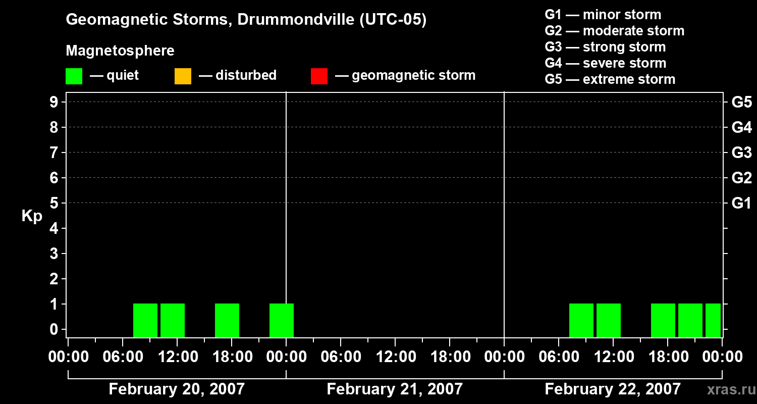 Geomagnetic storms in Drummondville — Feb 22, 2007