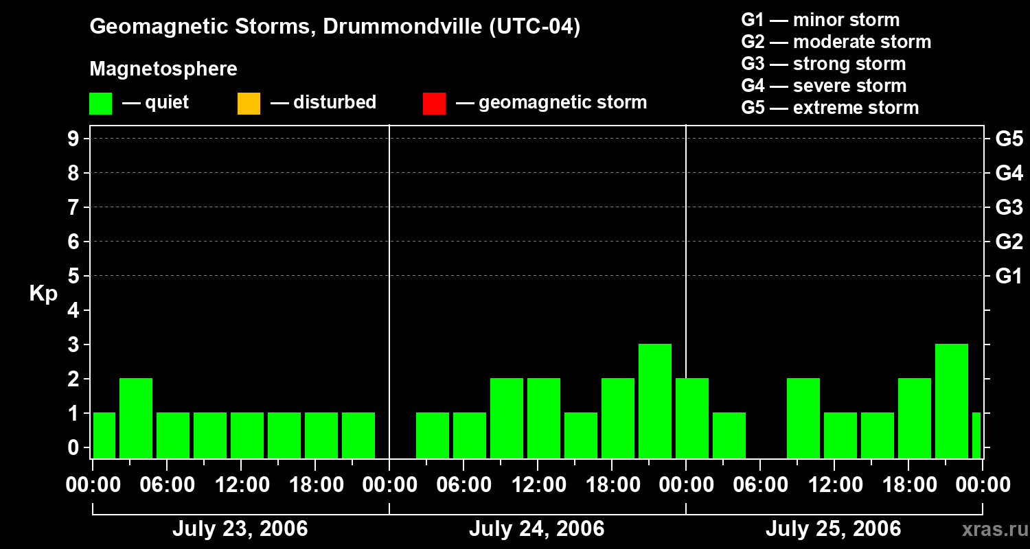 Geomagnetic storms in Drummondville — Jul 25, 2006