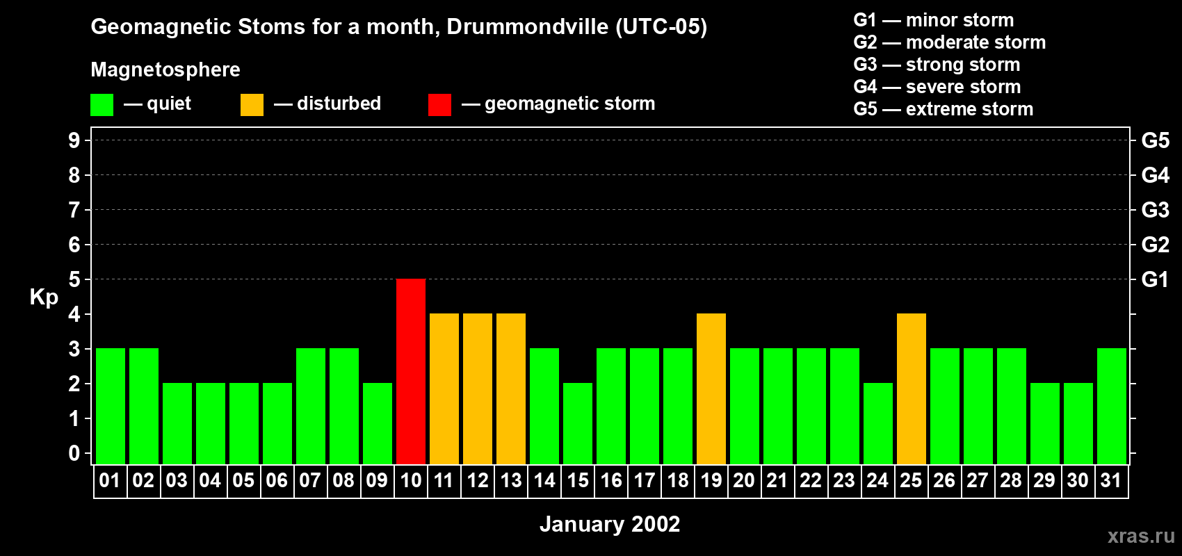 Geomagnetic storms in Drummondville — Jan 27, 2002