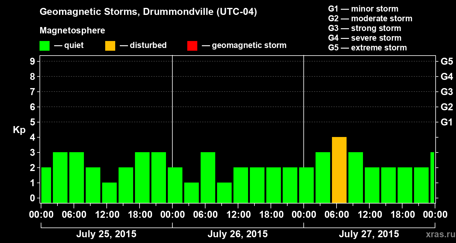 Geomagnetic storms in Drummondville — Jul 27, 2015