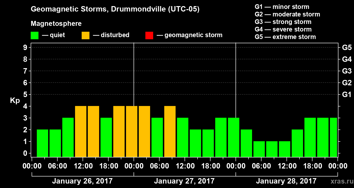 Geomagnetic storms in Drummondville — Jan 28, 2017
