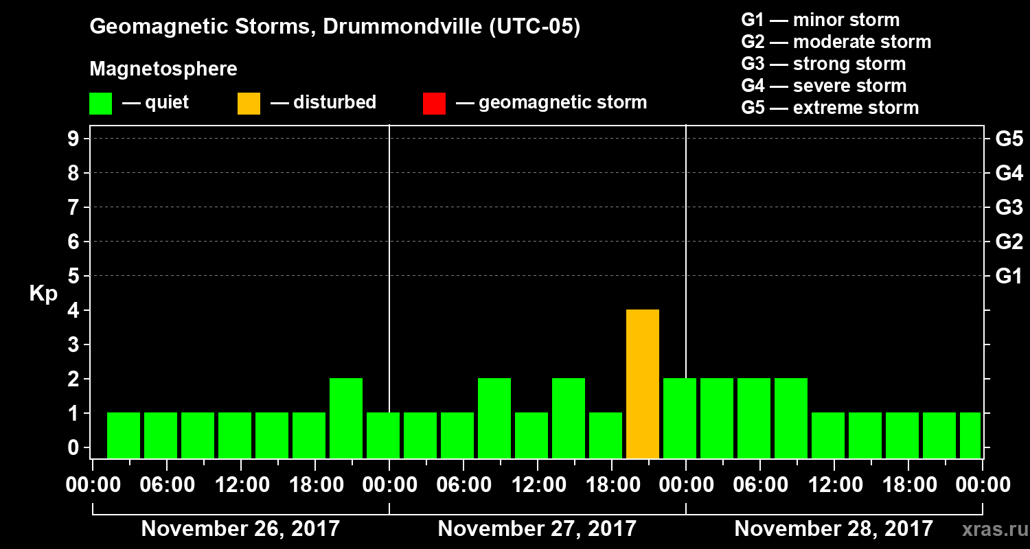 Geomagnetic storms in Drummondville — Nov 28, 2017