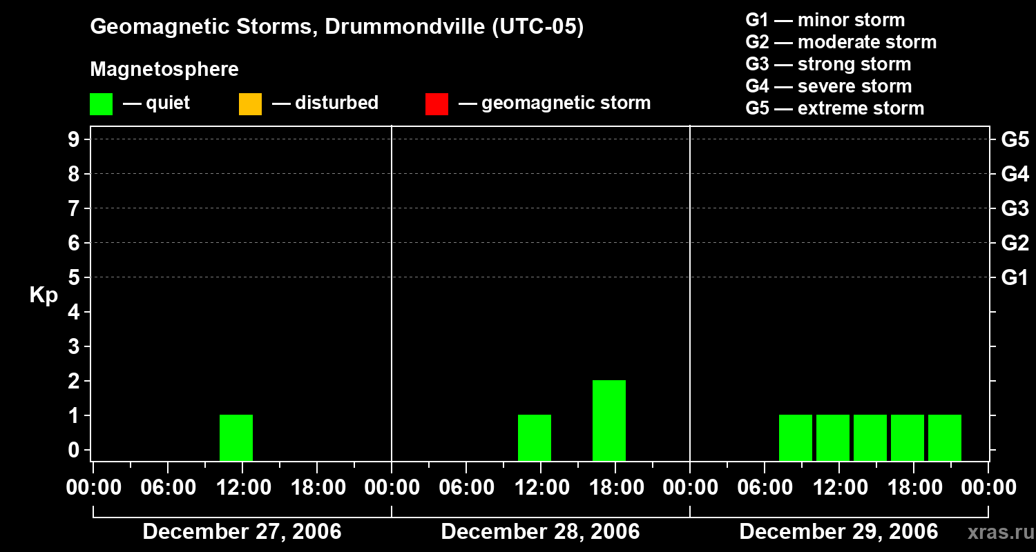 Geomagnetic storms in Drummondville on Dec 29, 2006