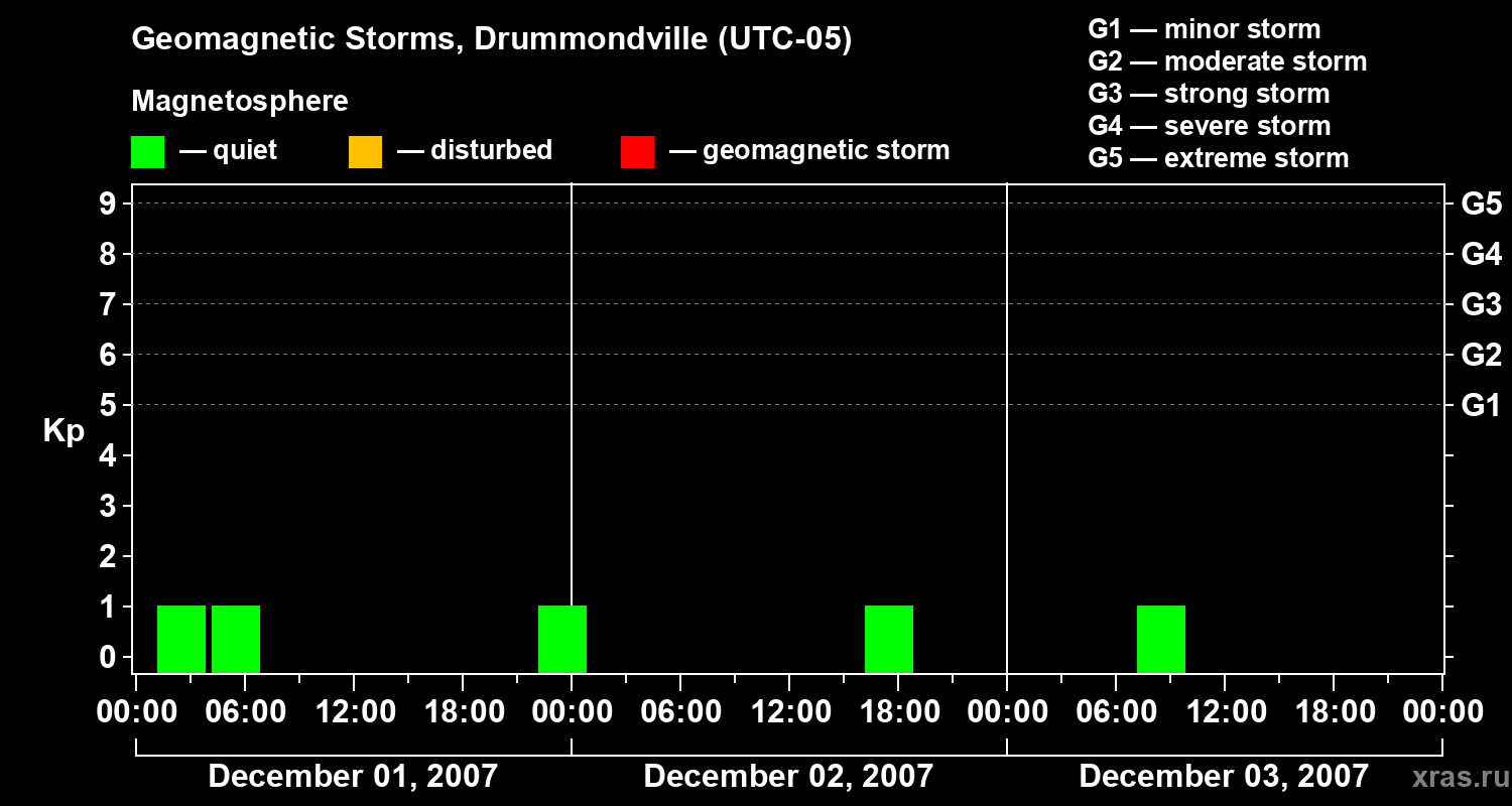 Geomagnetic storms in Drummondville on Dec 03, 2007