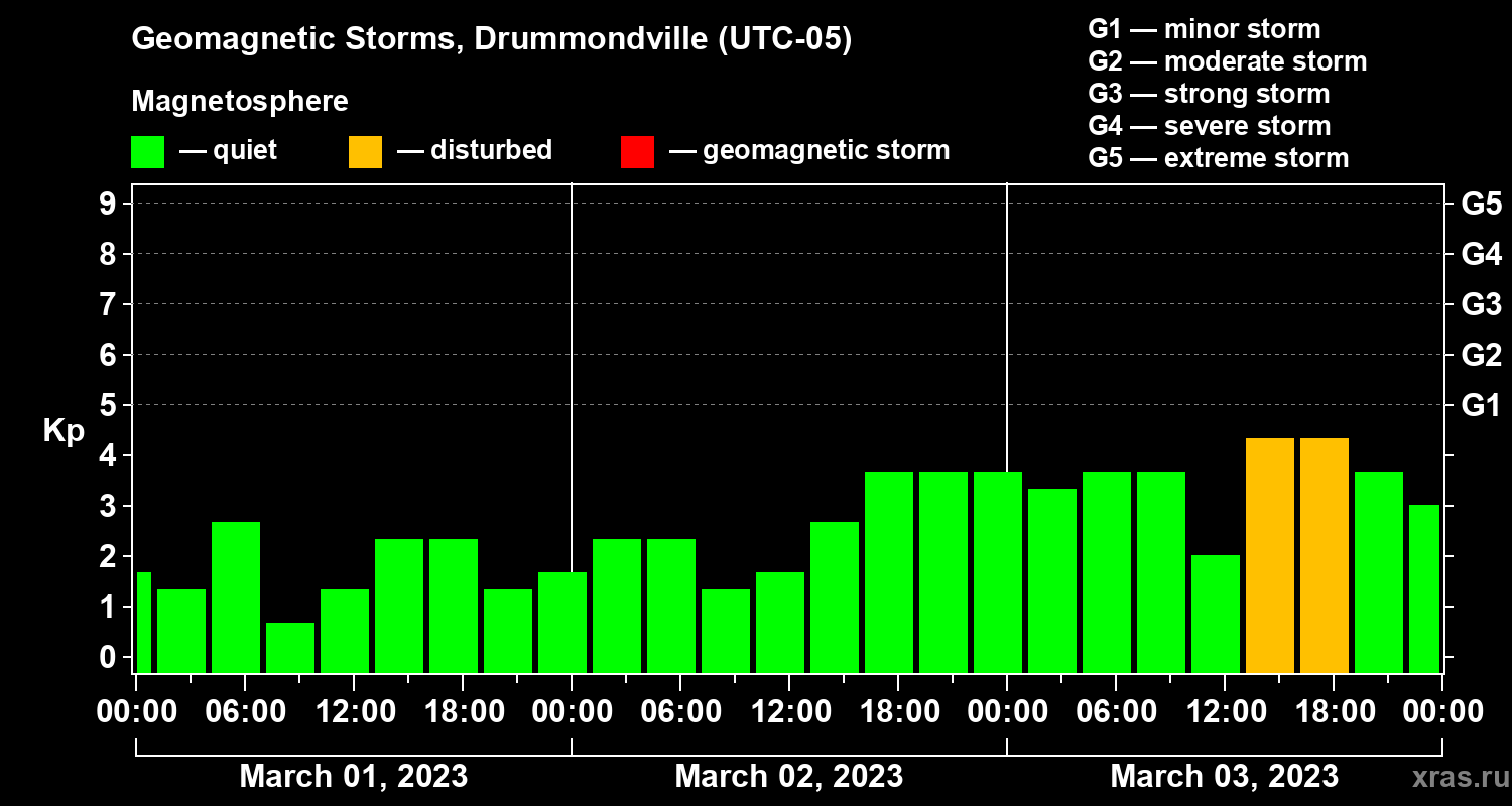 Geomagnetic storms in Drummondville — Mar 03, 2023