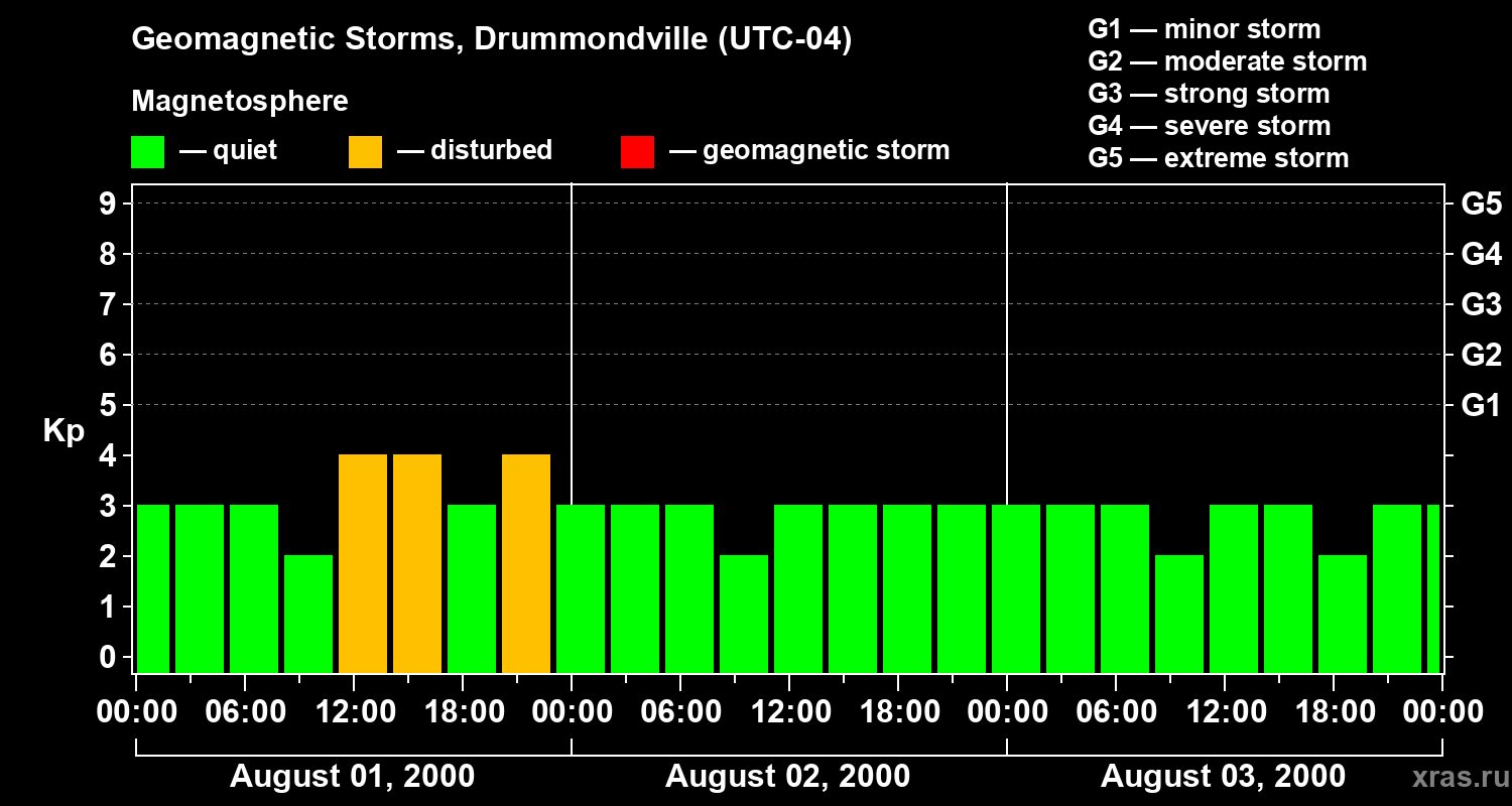 Geomagnetic storms in Drummondville on Aug 03, 2000