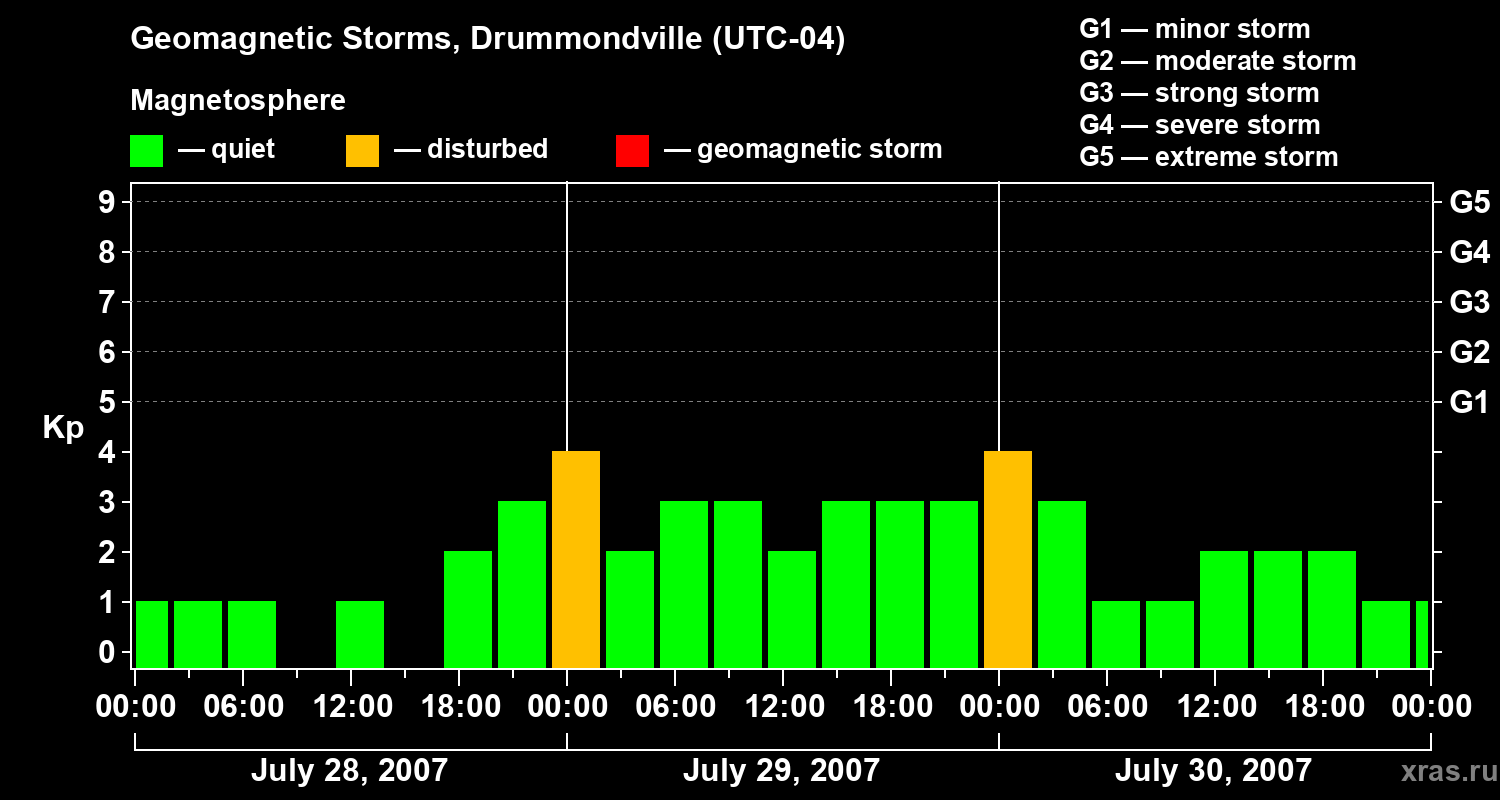 Geomagnetic storms in Drummondville — Jul 30, 2007
