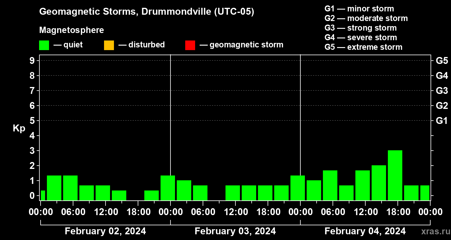 Geomagnetic storms in Drummondville — Feb 04, 2024