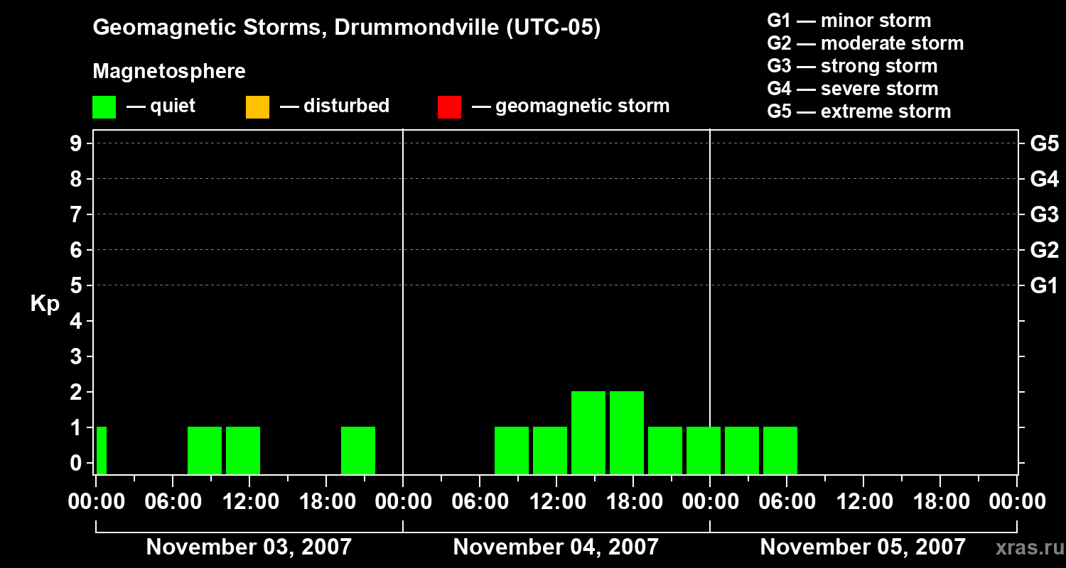 Geomagnetic storms in Drummondville on Nov 05, 2007
