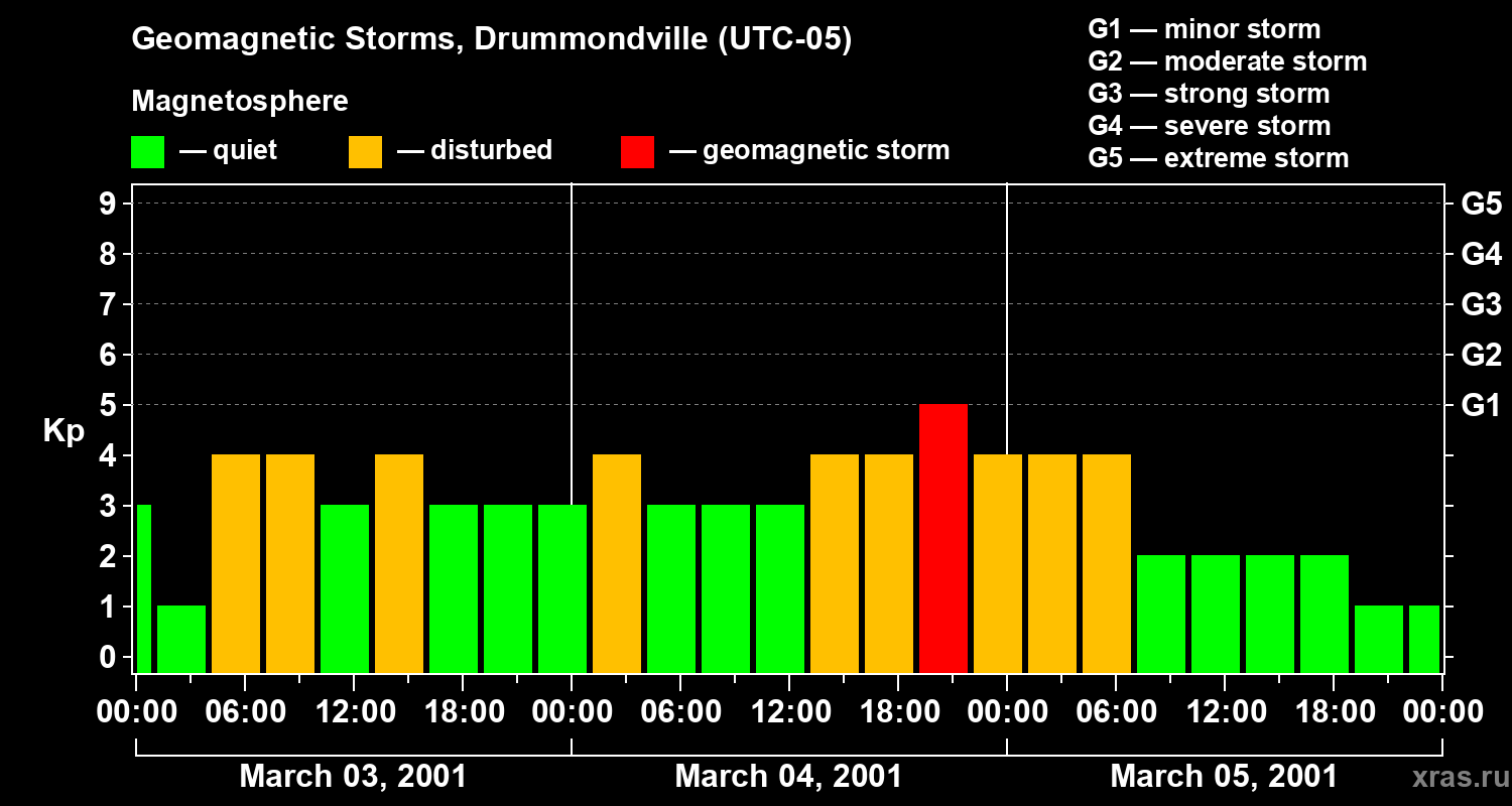 Geomagnetic storms in Drummondville — Mar 05, 2001