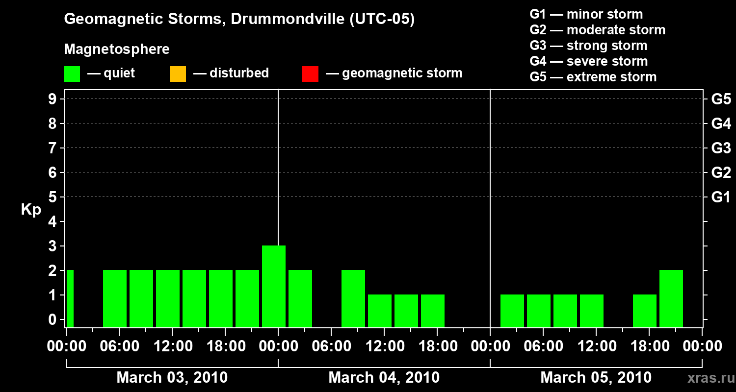 Geomagnetic storms in Drummondville on Mar 05, 2010