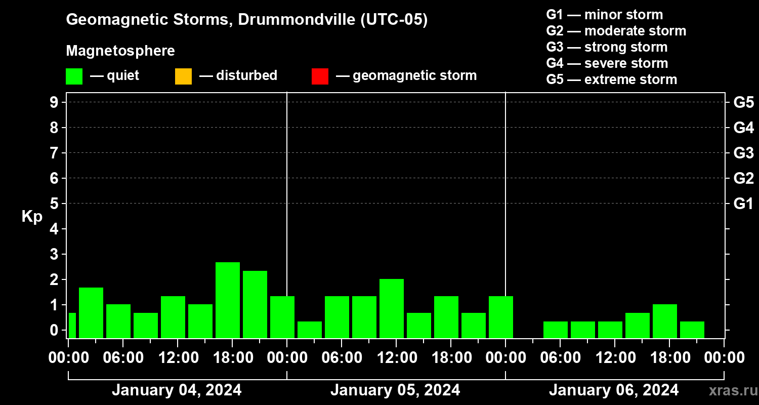 Geomagnetic storms in Drummondville — Jan 06, 2024