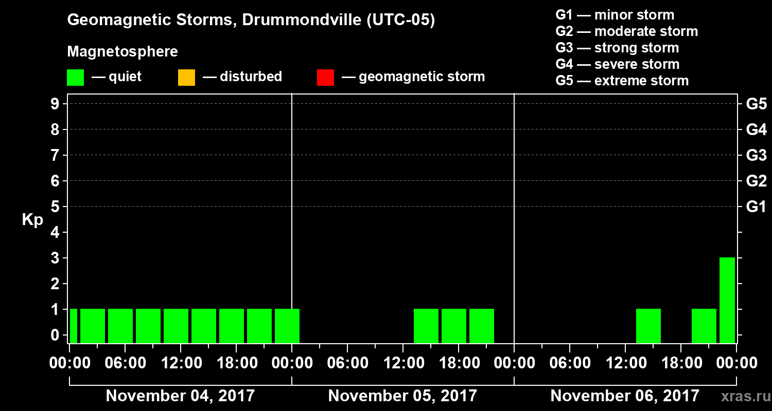 Geomagnetic storms in Drummondville — Nov 06, 2017