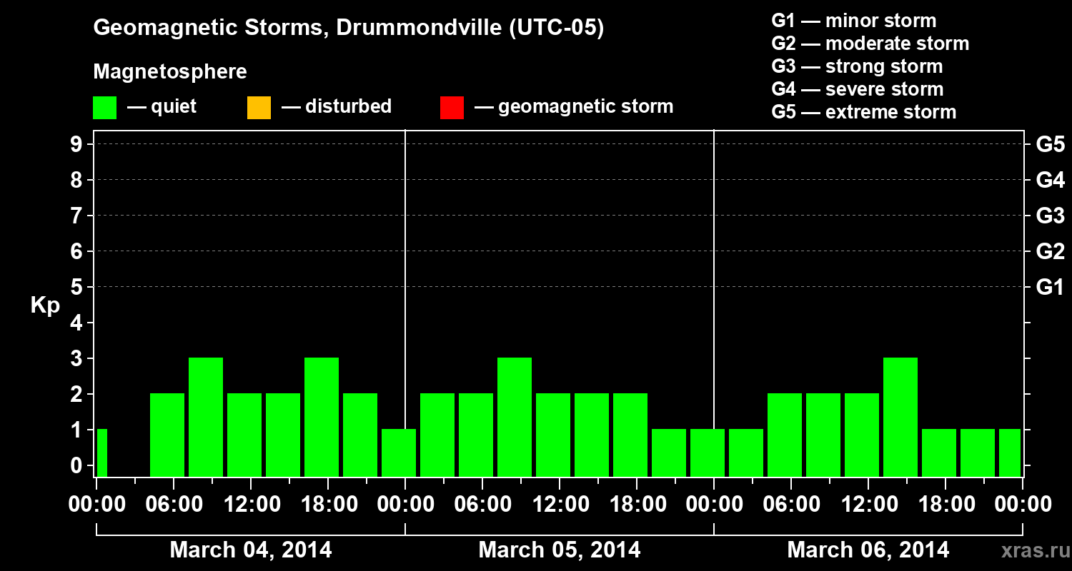 Geomagnetic storms in Drummondville — Mar 06, 2014