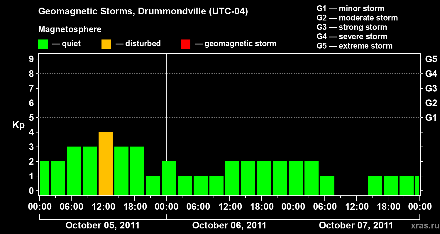 Geomagnetic storms in Drummondville — Oct 07, 2011
