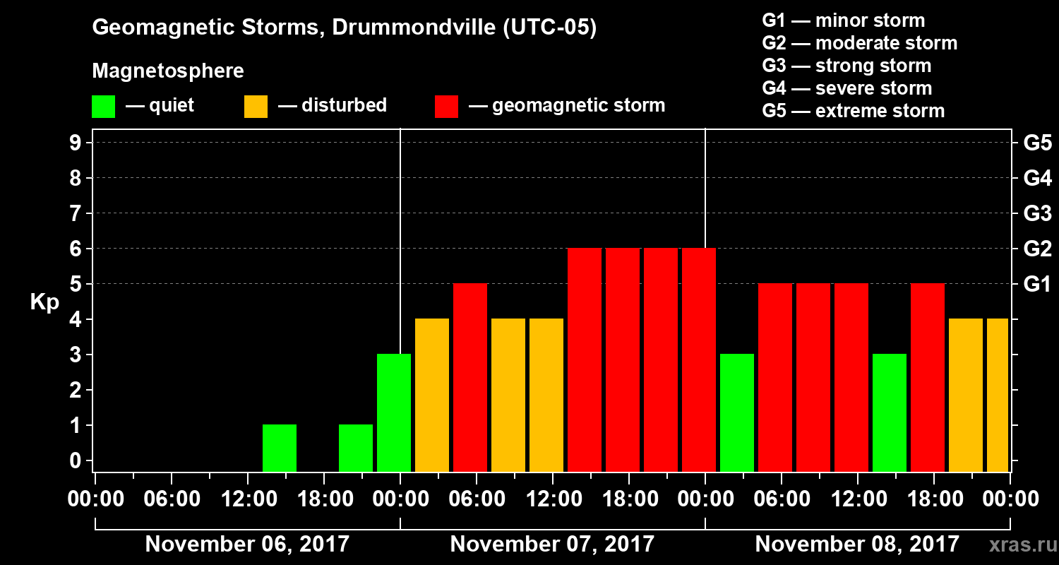 Geomagnetic storms in Drummondville — Nov 08, 2017