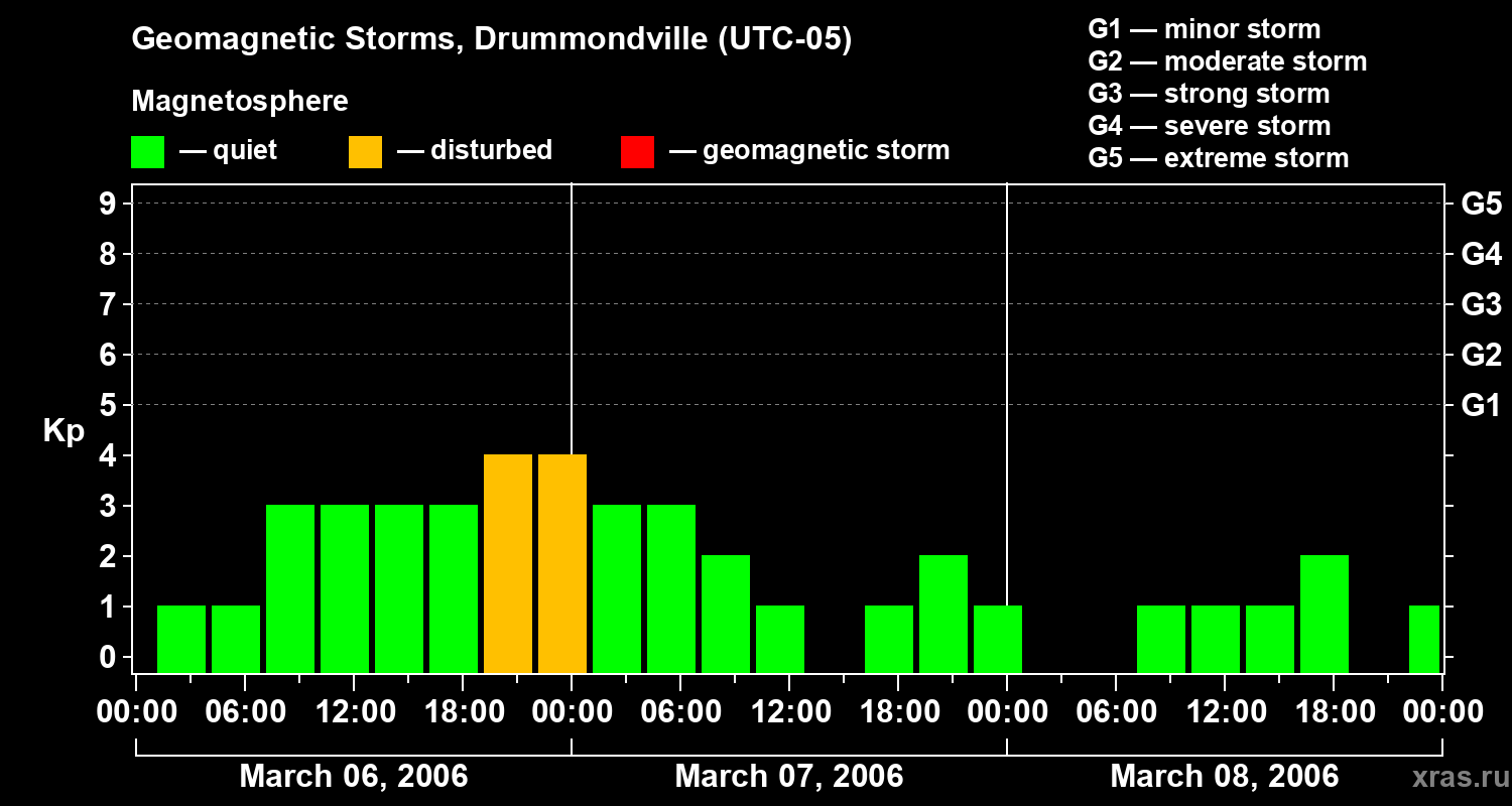 Geomagnetic storms in Drummondville — Mar 08, 2006