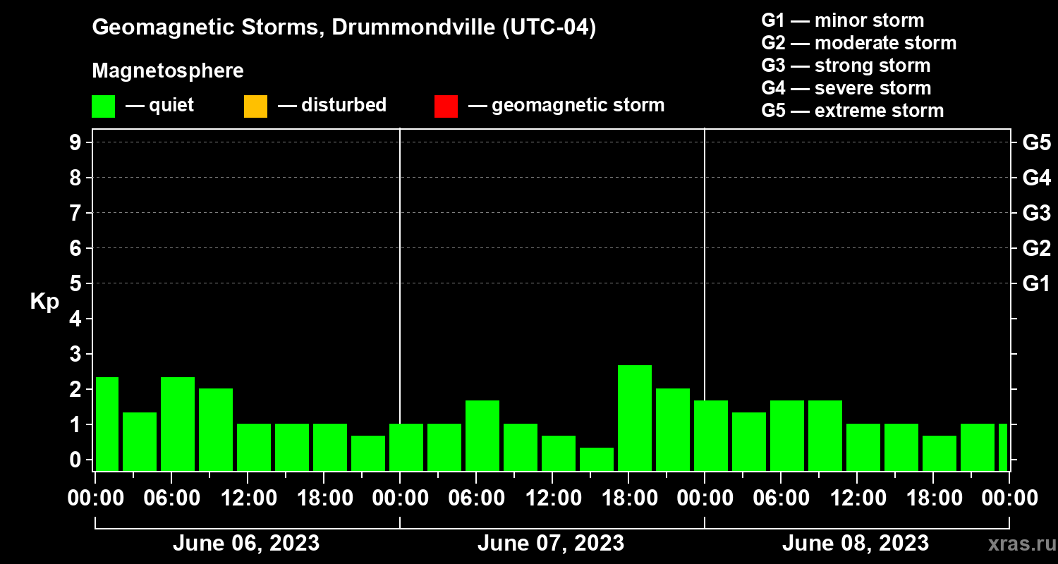 Geomagnetic storms in Drummondville — Jun 08, 2023
