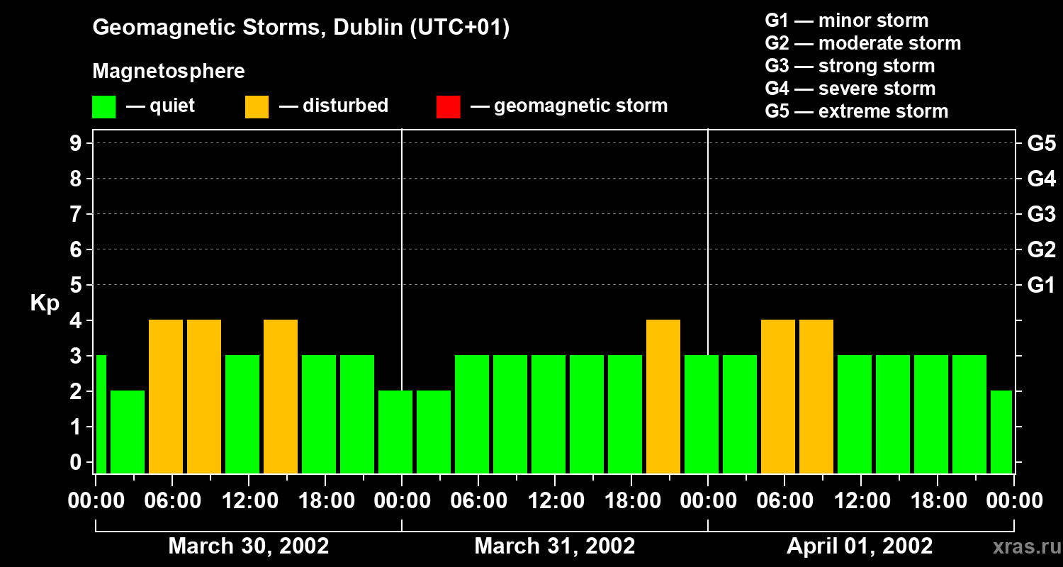 Geomagnetic storms in Dublin on Apr 01, 2002