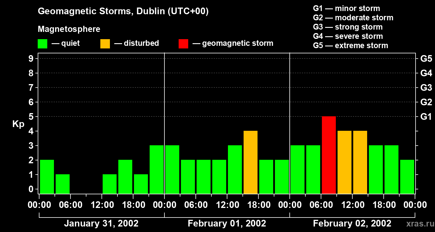 Geomagnetic storms in Dublin on Feb 02, 2002