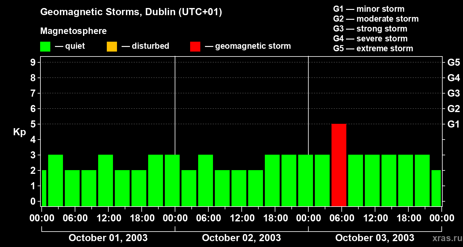 Geomagnetic storms in Dublin on Oct 03, 2003