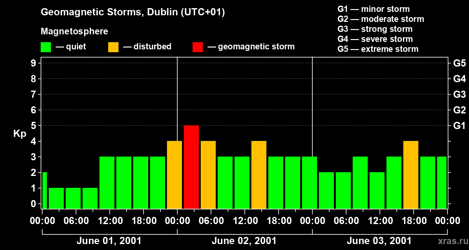 Geomagnetic storms in Dublin on Jun 03, 2001